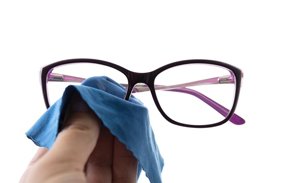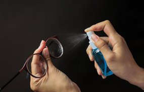 Soft Clean for Sharp Sight Spray a small amount of lens cleaner onto a clean, microfiber cloth. Avoid cleaners with alcohol or harsh chemicals, as they can damage the anti-reflective coating on your blue light blocking glasses.