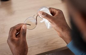 Dry with a clean, lint-free cloth Pat the lenses dry with a clean, lint-free cloth to prevent streaks or water spots. Avoid using tissues or paper towels, as they can leave behind lint or scratches. Once dry, your blue light blocking glasses will be clean and ready to wear!